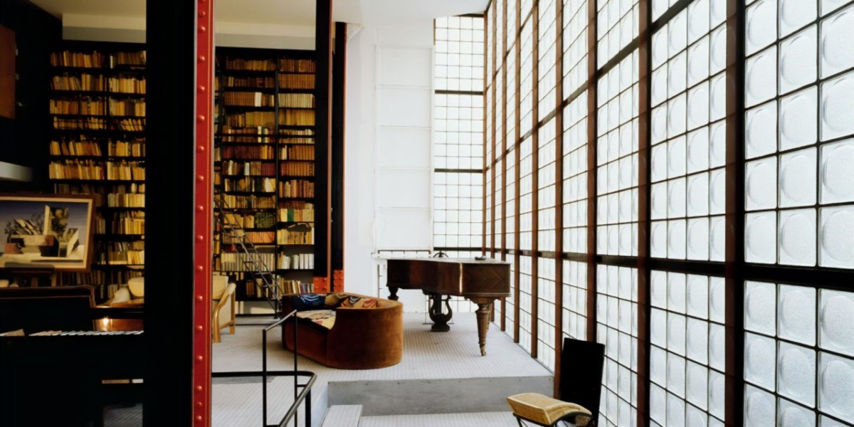 Le couple possède à Paris, sur une parcelle du quartier de Saint-Germain-des-Prés, un petit hôtel particulier sans prétention, entre cour et jardin, on souhaite le démolir et construire une nouvelle maison à la place. Mais le dernier étage sous comble est occupé par une locataire qu’on ne peut faire partir. Chareau va tirer parti de cette contrainte pour réaliser un véritable tour de force. Les deux premiers niveaux seront évidés. On ne gardera sur le côté qu’une entrée et un escalier qui desserviront l’appartement de la locataire conservé tel quel. La nouvelle construction s’insère dans l’espace ainsi dégagé, une structure d’acier en forme d’ossature et supporte en même temps l’ancien second étage et le comble.